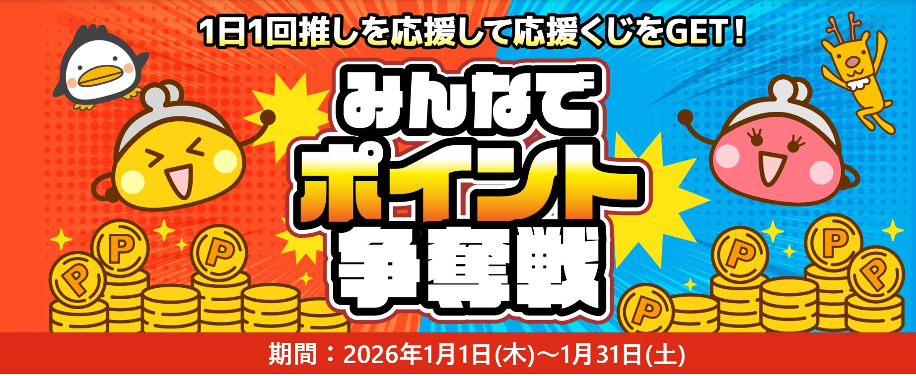 2026年1月1日(木)~1月31日(土)まで、ちょびリッチで推しユーザーを1日1回応援しよう!推しユーザーが発行した応援URLから応援すると1日1回応援くじを引くことができます!