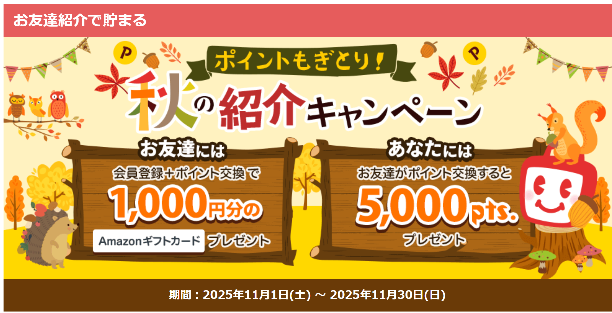 2025年11月1日(土) ~ 2025年11月30日(日)までに当サイト経由でECナビに新規登録後、12月31日までにポイント交換すると1,000円分のAmazonギフトカードをプレゼント!
