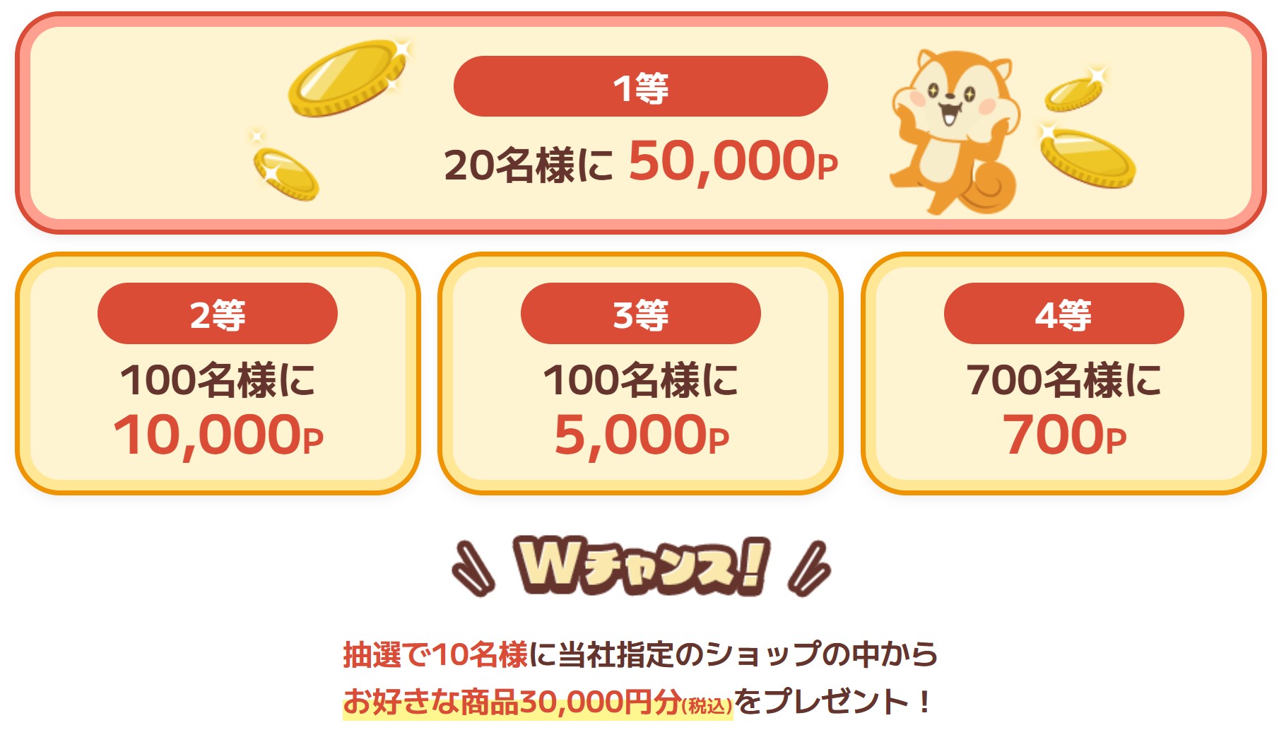 1等 50,000P 20名
